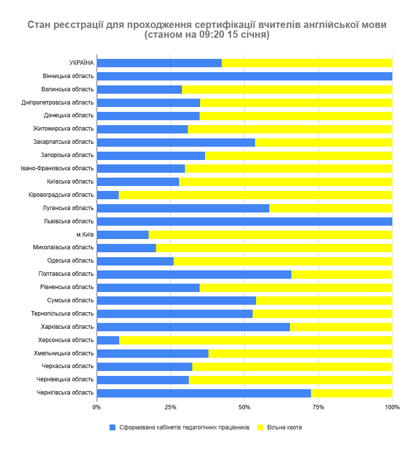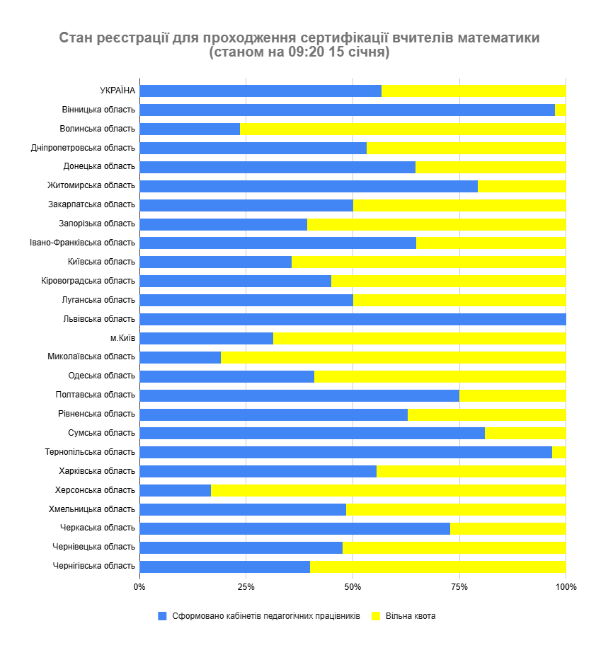 Реєстрацію вчителів української мови, іноземної (англійської) мови, математики Львівської області, вчителів початкових класів, іноземної (англійської мови) Вінницької області, вчителів початкових класів Полтавської, Рівненської, Чернівецької областей, а також вчителів української мови із Сумської області в межах основного періоду припинено достроково.