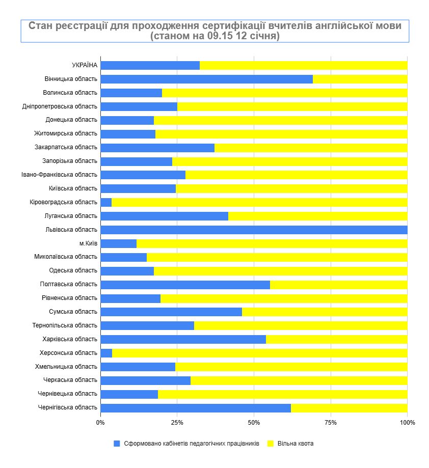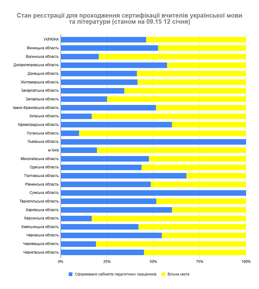 Реєстрацію вчителів української мови, іноземної (англійської) мови, початкових класів Львівської області, вчителів початкових класів Вінницької, Полтавської областей, а також вчителів української мови із Сумської області в межах основного періоду припинено достроково.